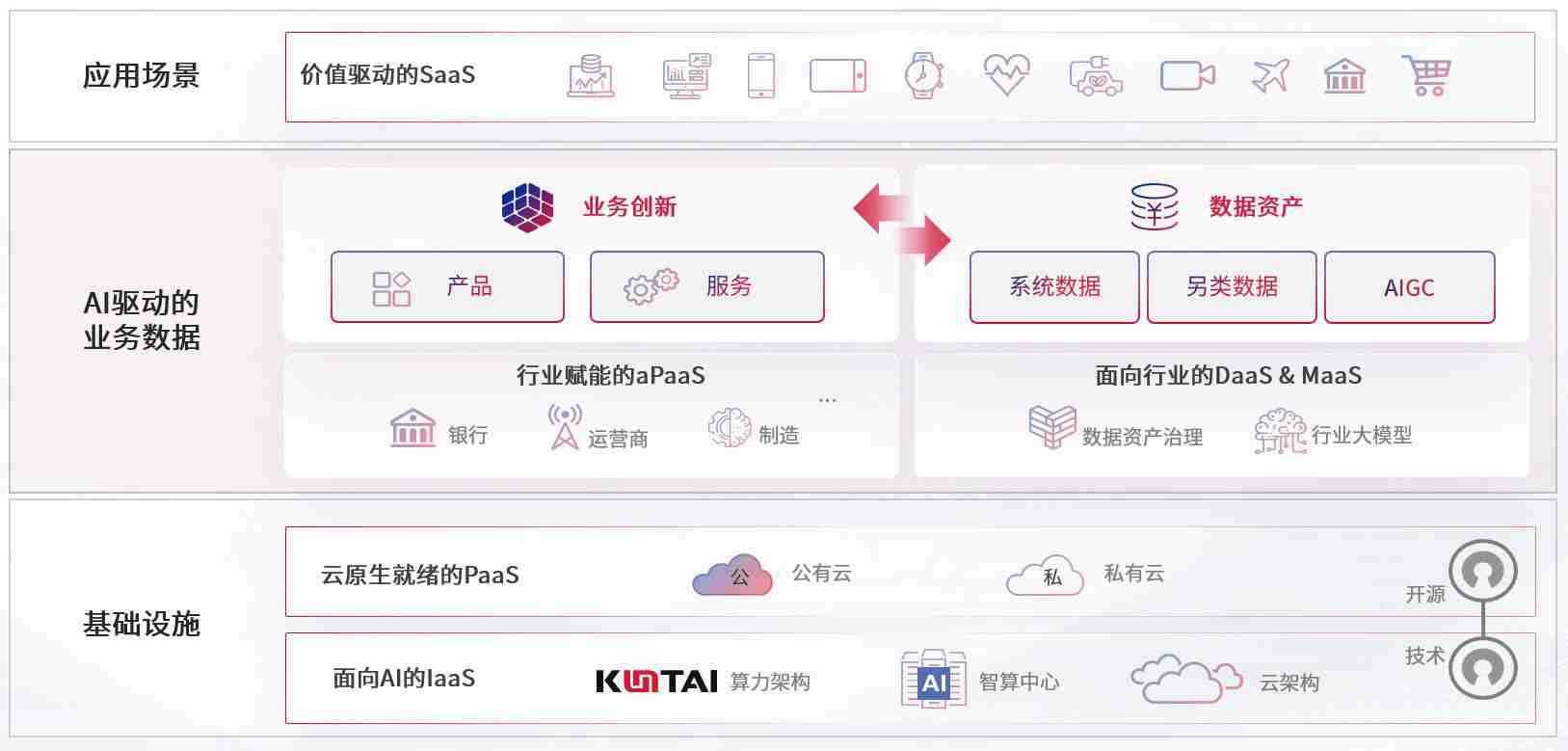 数字时代,,围绕企业数字化转型的关键要素,,,,z6com尊龙数码开创性的提出数云融合战略和技术体系框架,,,,着力在云原生、、、数字原生、、、、AI原生和信创产业上架构产品和服务能力,,为处在不同数字化转型阶段的快消零售、、、汽车、、、金融、、、、医疗、、政企、、、教育、、、运营商等行业客户提供泛在的敏捷IT能力和融合的数据驱动能力,,,构建跨界融合创新的数字业务场景和新业务模式,,助力企业级客户建立面向未来的核心能力和竞争优势,,全面推动社会的数字化、、智能化转型升级。。。