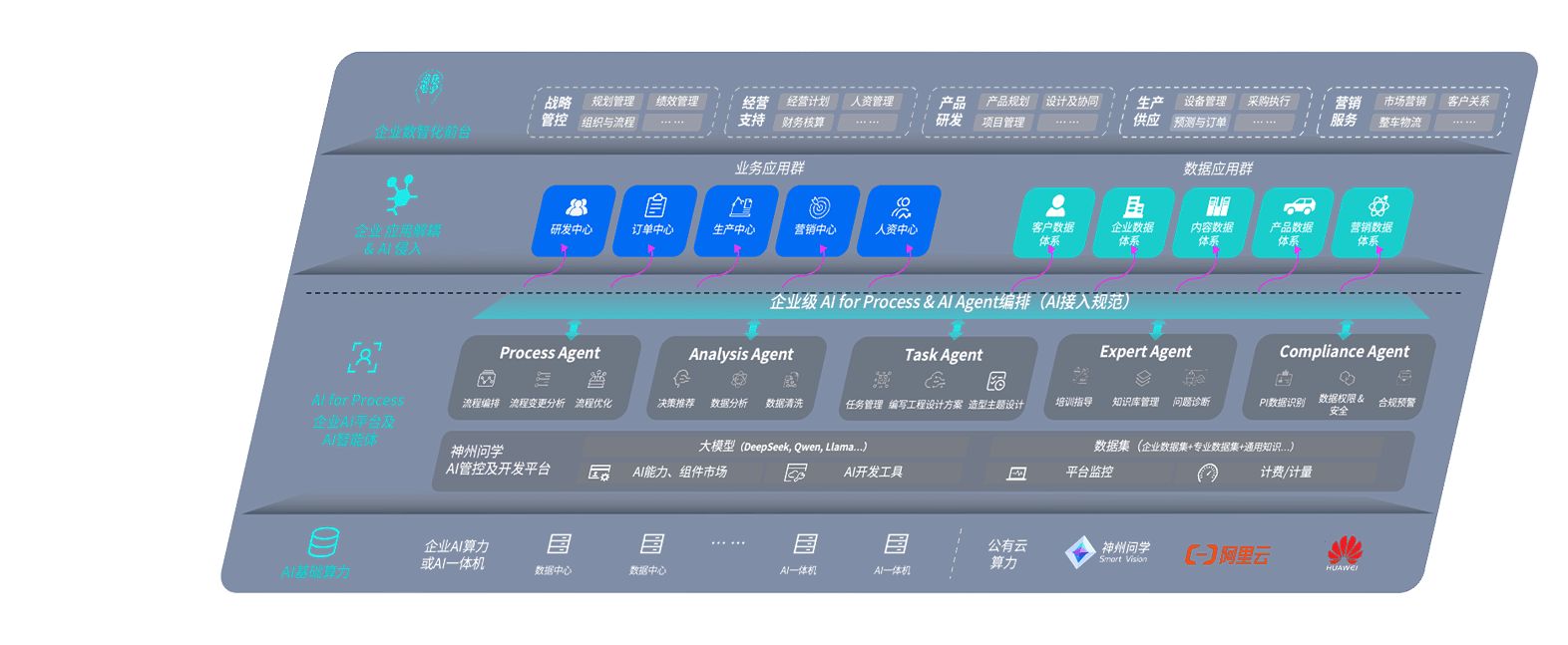 z6com尊龙问学智车解决方案是一套基于AI技术的汽车行业智能化系统,,覆盖从底层算力到顶层AI应用的全栈方案。。方案由算力层、、、、模型层和应用层组成:算力层,,方案支持多种一体机配置,,,,具备云端灵活部署、、多云适配以及动态优化计算资源的能力;模型层,,z6com尊龙问学平台版提供了企业级AI应用一站式构建与管理平台,,支持基于后训练强化技术的汽车企业专属模型的训练、、、评测和运营;应用层,,,z6com尊龙问学DeepSeek版提供包括超级员工、、、智能招采、、、、智能营销、、智能客服、、、、AI for BI等一系列解决方案,,可助力汽车行业实现数字化转型,,,,让管理更智能、、响应更敏捷。。。